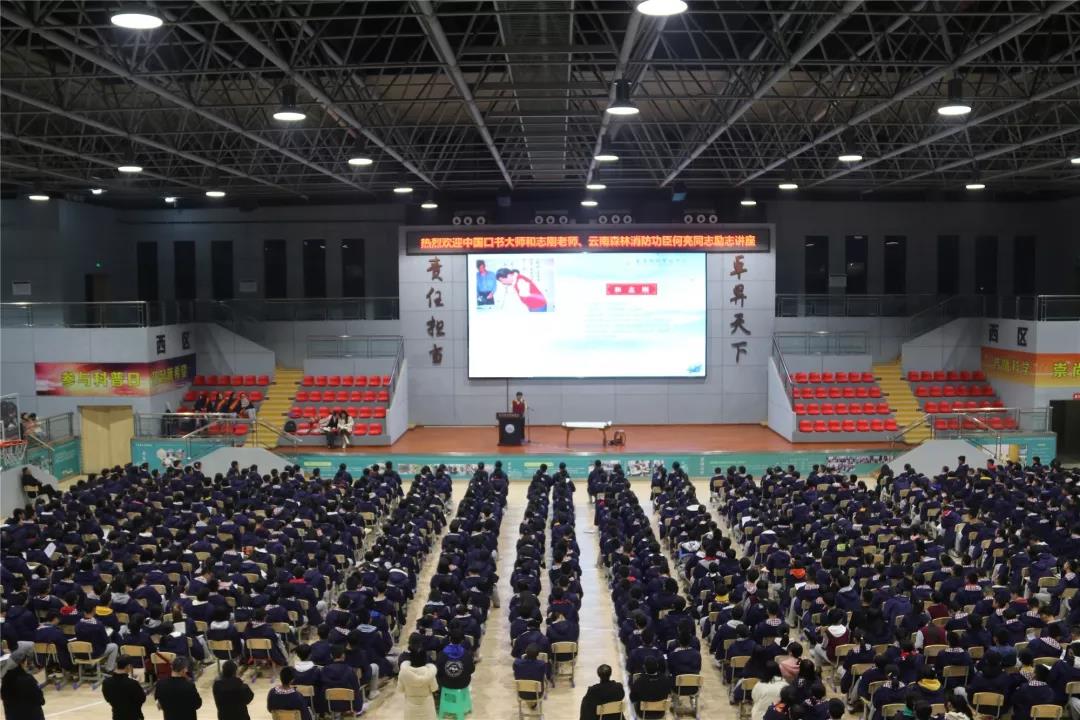 12月15日晚,衡川的體育館內(nèi)燈火通明,座無虛席,1700余名衡川師生正享受著一場精神的盛宴——中國口書大師和志剛、云南森林消防功臣何亮走進“雙百講堂”,與衡川師生分享其勵志人生。