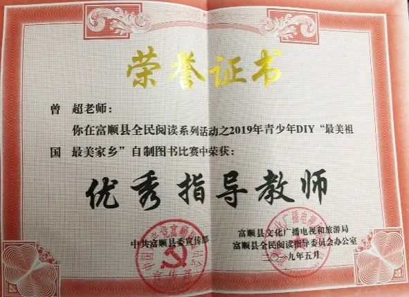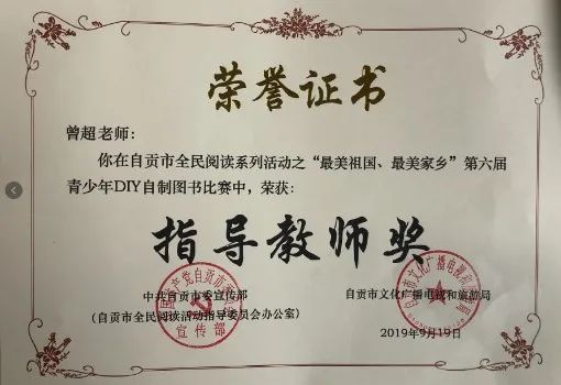 學(xué)生獲自貢市第六屆青少年DIY 自制圖書比賽一等獎。