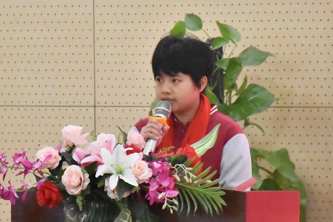 (906班學(xué)生代表謝欣翰:100天的路程將見(jiàn)證我們攀登時(shí)的艱辛,100天之后的六月,讓我們把最優(yōu)異的成績(jī)獻(xiàn)給母校,為母校爭(zhēng)輝,為自己喝彩!”)